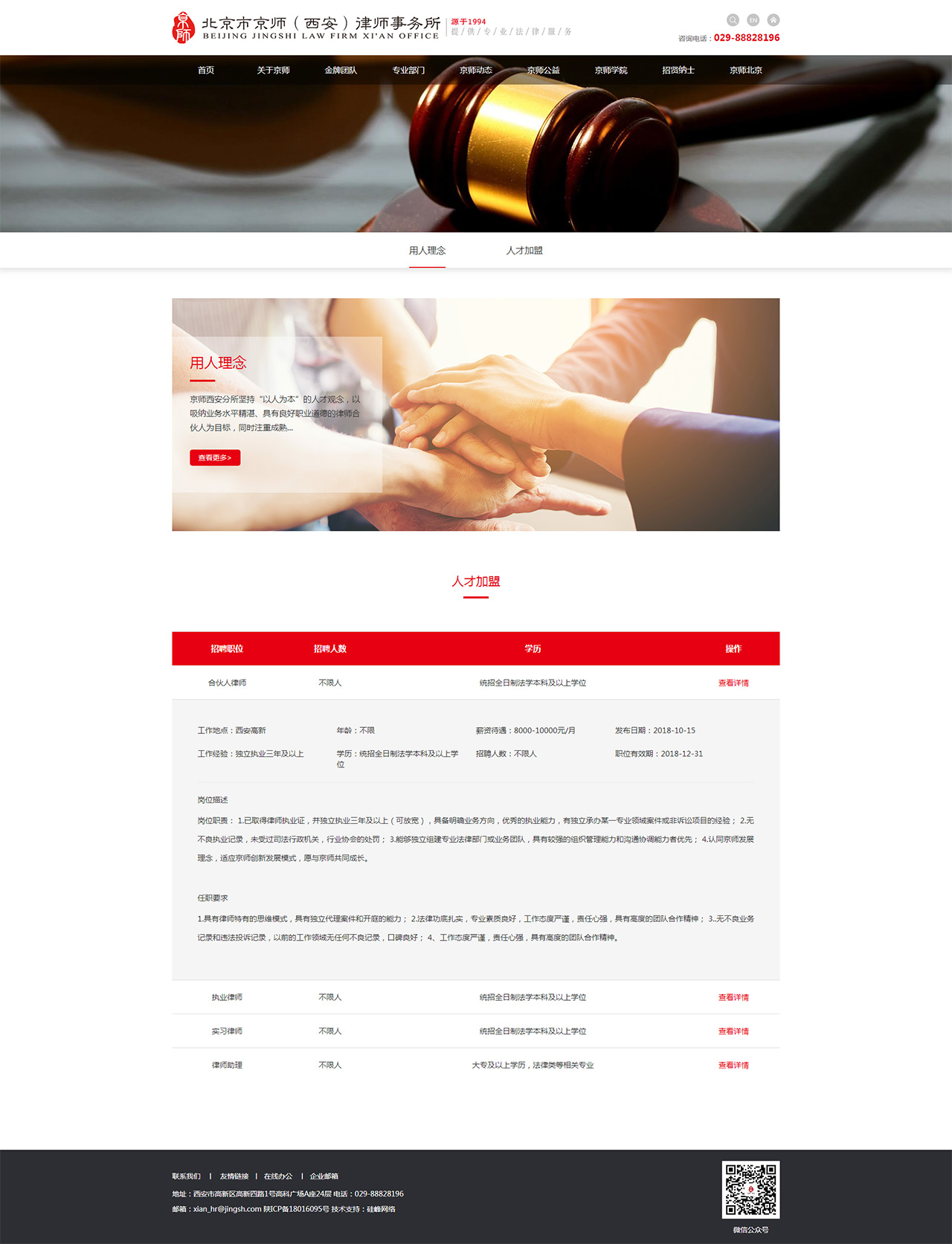 京師西安分所位于西安市高新區高新四路1號高科廣場(chǎng)A座24層,雄踞高新區北大門(mén),坐擁地段顯赫,交通便利。所內辦公面積1600余平米,下設24個(gè)部門(mén),配置開(kāi)闊敞亮的獨立辦公室、模塊化工位、多功能會(huì )議廳、模擬法庭、黨員活動(dòng)室、VIP洽談室、會(huì )客區等硬件設施,在為律師打造優(yōu)越辦公、洽談環(huán)境的同時(shí),也竭力為律師提供五星級的優(yōu)質(zhì)服務(wù)。