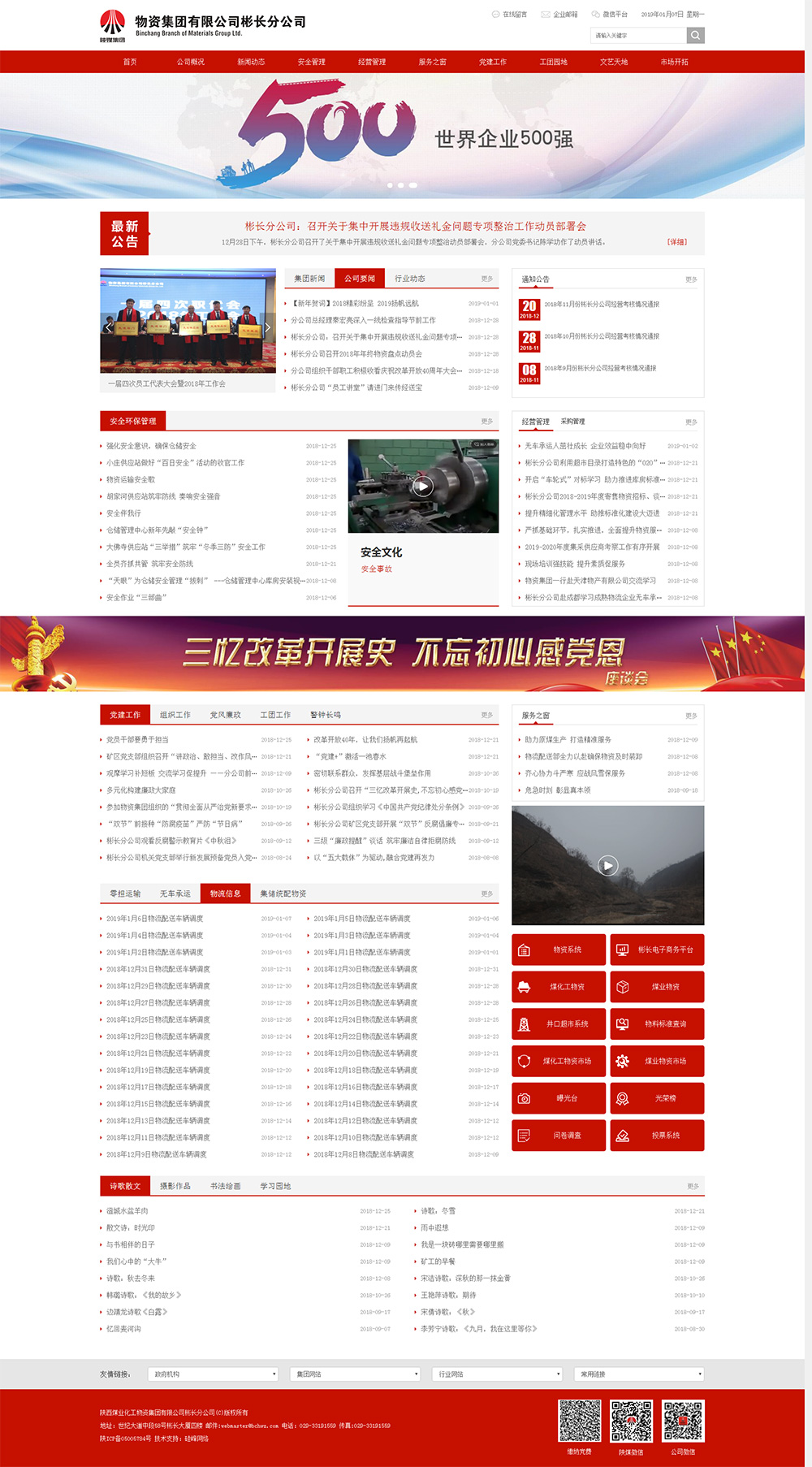 陜西煤業(yè)化工物資集團有限公司彬長(cháng)分公司(以下簡(jiǎn)稱(chēng)我公司)是在陜西煤業(yè)化工集團物資供應板塊化管理、專(zhuān)業(yè)化運營(yíng)管理模式下,由陜西煤業(yè)化工物資集團(以下簡(jiǎn)稱(chēng)物資集團)對陜西彬長(cháng)礦區物資供銷(xiāo)有限責任公司重組整合而成立的。公司位于“八百里泰川”腹地,中國第一帝都咸陽(yáng)。前身為成立于2005年3月8日的陜西彬長(cháng)礦區開(kāi)發(fā)建設有限責任公司物資供應公司。