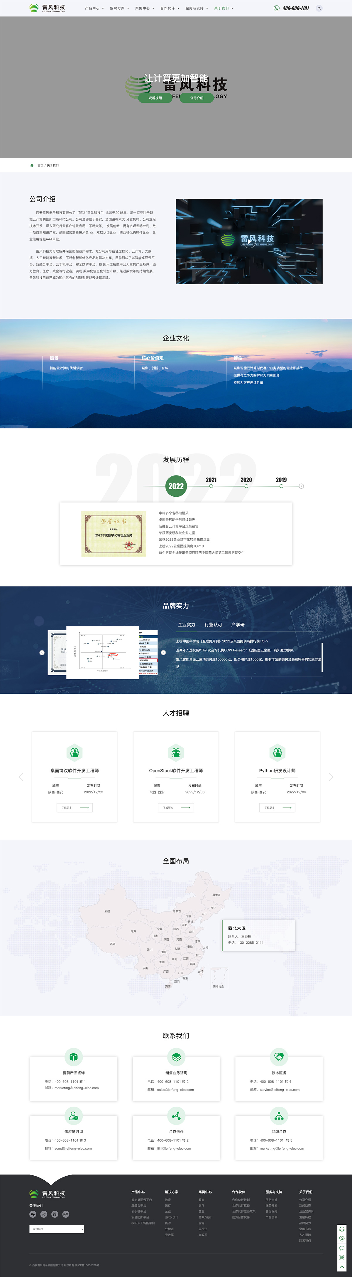 西安雷風(fēng)電子科技有限公司(簡(jiǎn)稱(chēng)“雷風(fēng)科技”)運營(yíng)于2015年,是一家專(zhuān)注于智能云計算的創(chuàng )新型高科技公司。公司總部位于西安,全國設有六大 分支機構。公司立足技術(shù)開(kāi)發(fā),深入研究行業(yè)客戶(hù)場(chǎng)景應用,不斷變革, 發(fā)展創(chuàng )新,擁有多項發(fā)明專(zhuān)利、數十項自主知識產(chǎn)權,是國家級高新技術(shù)企 業(yè)、雙軟認證企業(yè)、陜西省優(yōu)秀軟件企業(yè)、企業(yè)信用等級AAA單位。