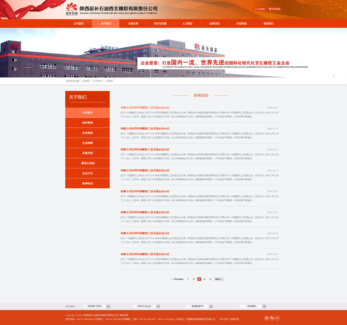 陜西延長(cháng)石油西北橡膠有限責任公司是陜西延長(cháng)石油(集團)有限責任公司的二級板塊公司,是全國唯一一家集天然膠種植與加工、子午線(xiàn)輪胎、橡膠制品制造銷(xiāo)售研發(fā)于一體的大型橡膠企業(yè)。位列中國膠管“十強企業(yè)”,中國橡膠制品“十強企業(yè)”,中國化工企業(yè)500強,中國橡膠工業(yè)百強企業(yè)第29位。