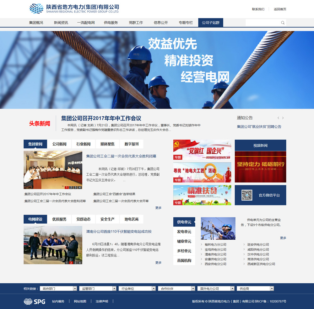 由硅峰網(wǎng)絡(luò )為陜西省地方電力集團提供的門(mén)戶(hù)網(wǎng)站站群管理系統(1個(gè)集團主站,19個(gè)下屬公司子站,4套專(zhuān)題模板),實(shí)現了多站點(diǎn)發(fā)布信息,集中審核管理,多樣化的專(zhuān)題設計及自主模板選擇管理,采用前后端的完全分離、內外網(wǎng)服務(wù)器隔離部署,提高數據的安全性。