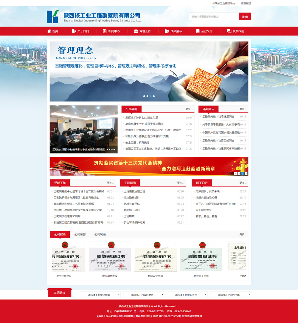 陜西核工業(yè)工程勘察院有限公司,現為中陜核工業(yè)集團公司(原陜西省核工業(yè)地質(zhì)局)旗下全資子公司,于1985年組建。是一個(gè)以工程勘察、地質(zhì)災害防治、土地整治和環(huán)境治理為核心業(yè)務(wù)的專(zhuān)業(yè)化技術(shù)密集型企業(yè)。