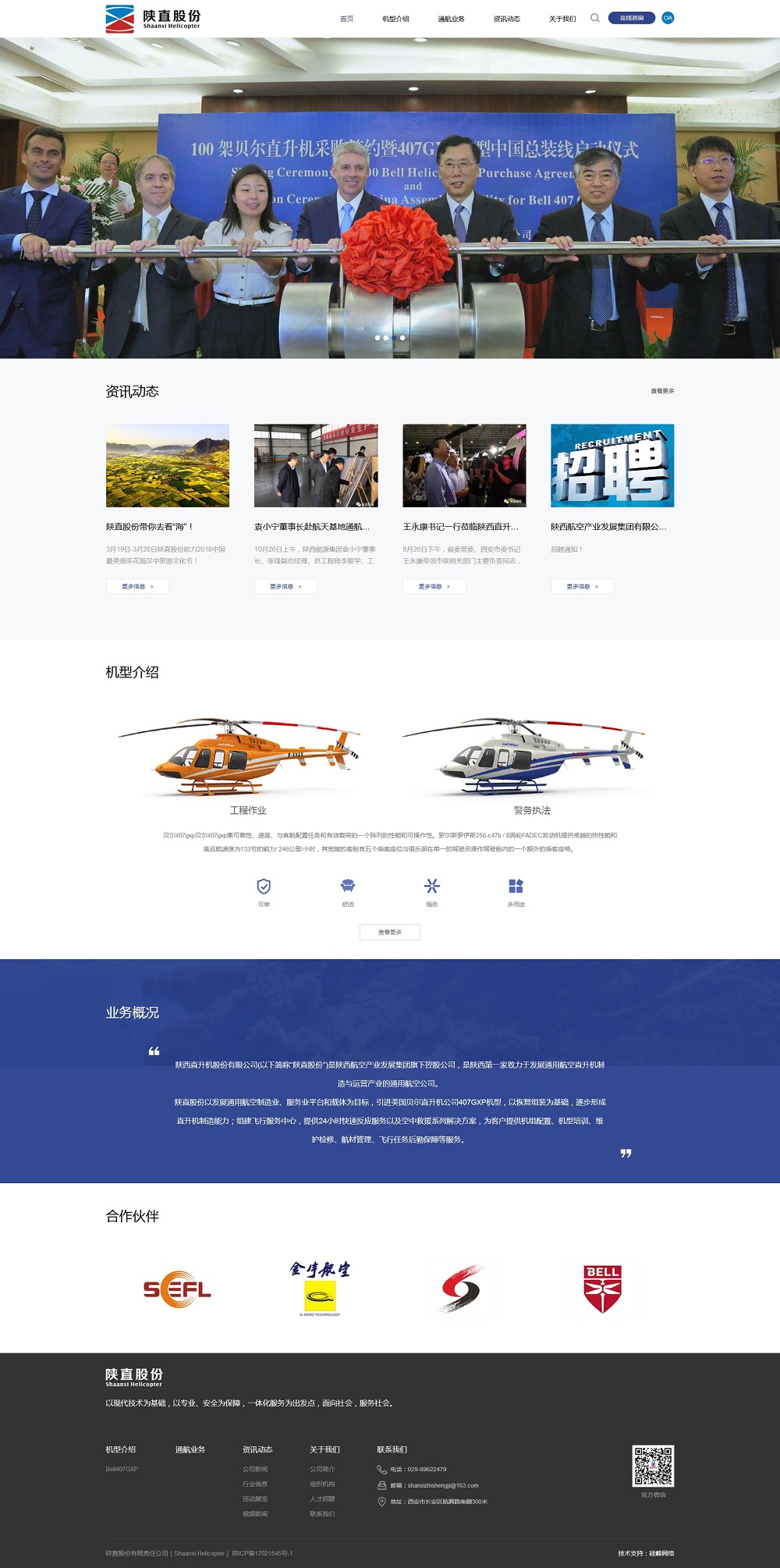 陜西直升機股份有限公司是陜西航空產(chǎn)業(yè)發(fā)展集團公司旗下的控股公司,成立于2017年5月,注冊地在西安航天產(chǎn)業(yè)基地,是我省致力于發(fā)展直升機組裝、改裝與運營(yíng)的平臺公司。2017年6月,與德事隆集團旗下的美國貝爾公司簽訂購機協(xié)議,合作引進(jìn)100架貝爾407GXP直升機,并在陜西西安構建直升機產(chǎn)業(yè)鏈,打造貝爾面向全國的保障和綜合服務(wù)基地。