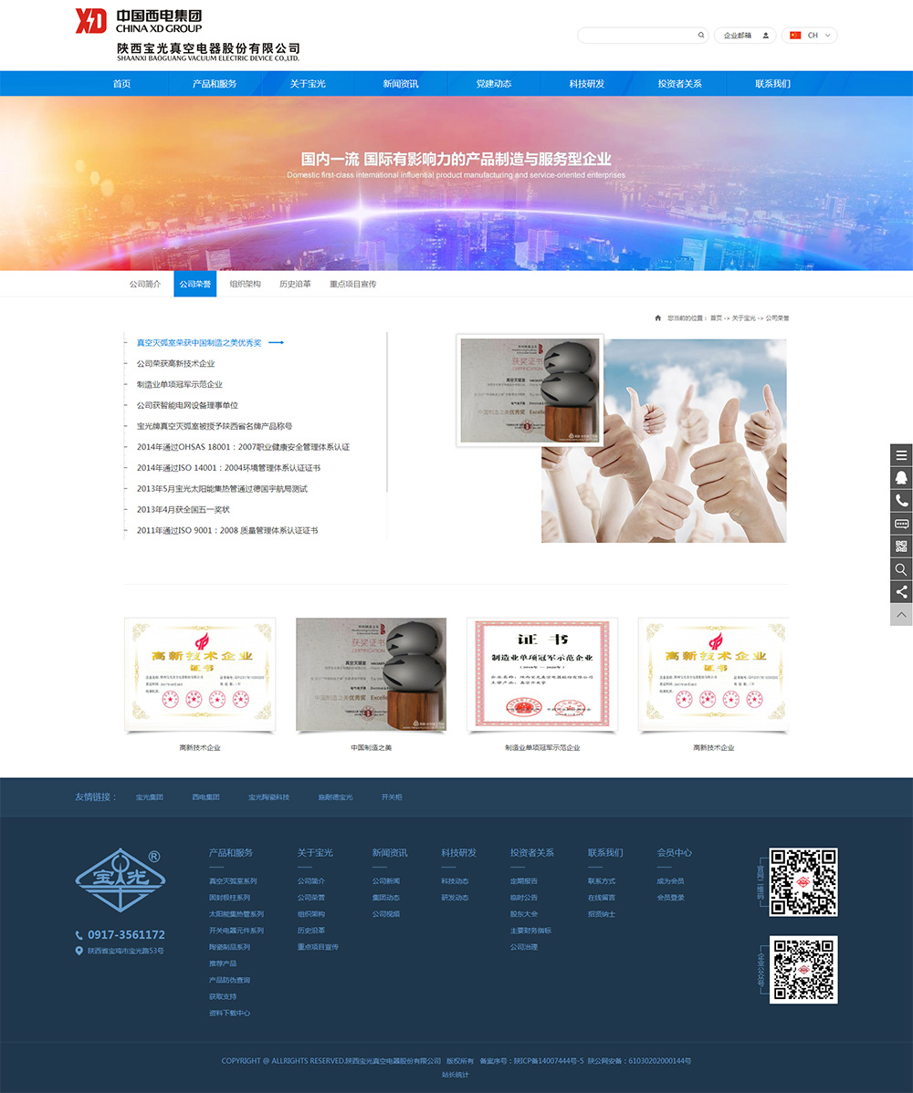 陜西寶光真空電器股份有限公司(簡(jiǎn)稱(chēng)“寶光股份”)是我國專(zhuān)業(yè)生產(chǎn)真空滅弧室和真空開(kāi)關(guān)設備的高新技術(shù)企業(yè),產(chǎn)品包括真空滅弧室、固封極柱、電真空陶瓷、太陽(yáng)能集熱管、高壓電器配件等,位于陜西省寶雞市, 注冊資本2.36億元,總資產(chǎn)8.2億元。寶光股份于2002年1月在上海證券交易所上市(股票代碼:600379)。