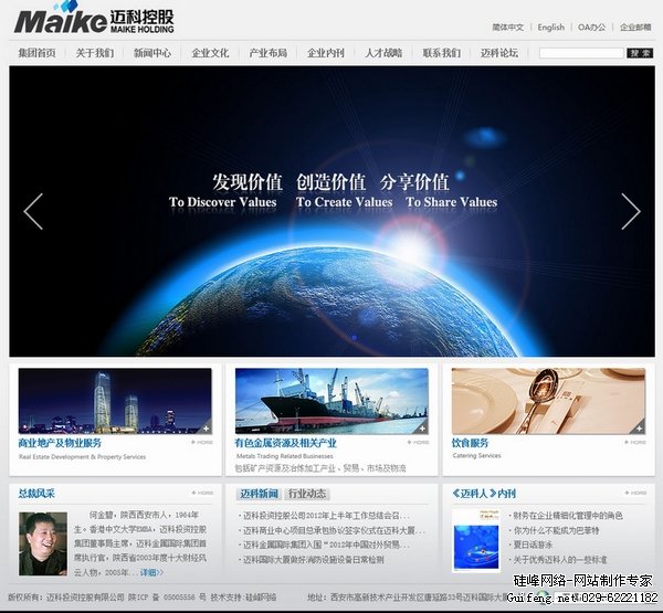 ![]() 在經(jīng)過(guò)硅峰網(wǎng)絡(luò )及邁科投資控股公司共同努力下,邁科集團官方網(wǎng)站(www.maikegroup.com)全面改版工作順利完成,并于9月底正式上線(xiàn)運行。此次新改版后的網(wǎng)站內容豐富,功能強大,界面友好,給人簡(jiǎn)約之美,彰顯著(zhù)邁科一流現代化企業(yè)集團的綜合實(shí)力。 新網(wǎng)站設計考慮了集團正在實(shí)施二次戰略轉型需要,參考了眾多國內外知名企業(yè)網(wǎng)站,確定了新的設計思路和理念,更加突出企業(yè)特色。各個(gè)版塊劃分與欄目表現形式更加合理與豐滿(mǎn),與舊網(wǎng)站相比有了質(zhì)的飛躍。 在網(wǎng)站首頁(yè)整體布局上,結合目前的流行趨勢,Banner區以多張大幅圖片的滾動(dòng)效果代替了之前的窄幅簡(jiǎn)單動(dòng)態(tài)效果,使瀏覽者對邁科集團項目建設情況一目了然。中間部分重點(diǎn)突出集團三大產(chǎn)業(yè)布局——商業(yè)地產(chǎn)及物業(yè)服務(wù)、有色金屬資源及相關(guān)產(chǎn)業(yè)和飲食服務(wù),下方設置總裁風(fēng)采、邁科新聞及行業(yè)動(dòng)態(tài)、《邁科人》內刊。 在版塊設置方面做了重新調整,進(jìn)一步完善了舊網(wǎng)站的格局。各版塊分類(lèi)更加清楚,每個(gè)版塊二級頁(yè)面菜單應用簡(jiǎn)潔明了,三級瀏覽頁(yè)面采用了更多的圖文搭配形式,既迎合了看圖時(shí)代網(wǎng)絡(luò )瀏覽者的讀圖需要,又在表現形式上更加飽滿(mǎn)。如"企業(yè)榮譽(yù)"由純文字展示變?yōu)閳D文滾動(dòng)形式。 此外,在欄目分類(lèi)上科學(xué)規劃,更加方便瀏覽,并且增加了一些新欄目和新功能。如"新聞中心"版塊新增了"視頻","企業(yè)文化"新增了"邁科文化"、"公司愿景",對"新聞中心"設置了搜索功能,使瀏覽者能夠更深入地了解集團形象。 總之,改版后的新網(wǎng)站大大提升了網(wǎng)站的整體效果,充分展示了邁科集團優(yōu)秀的企業(yè)文化。