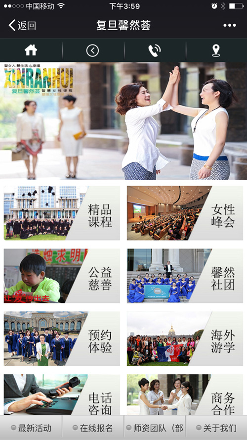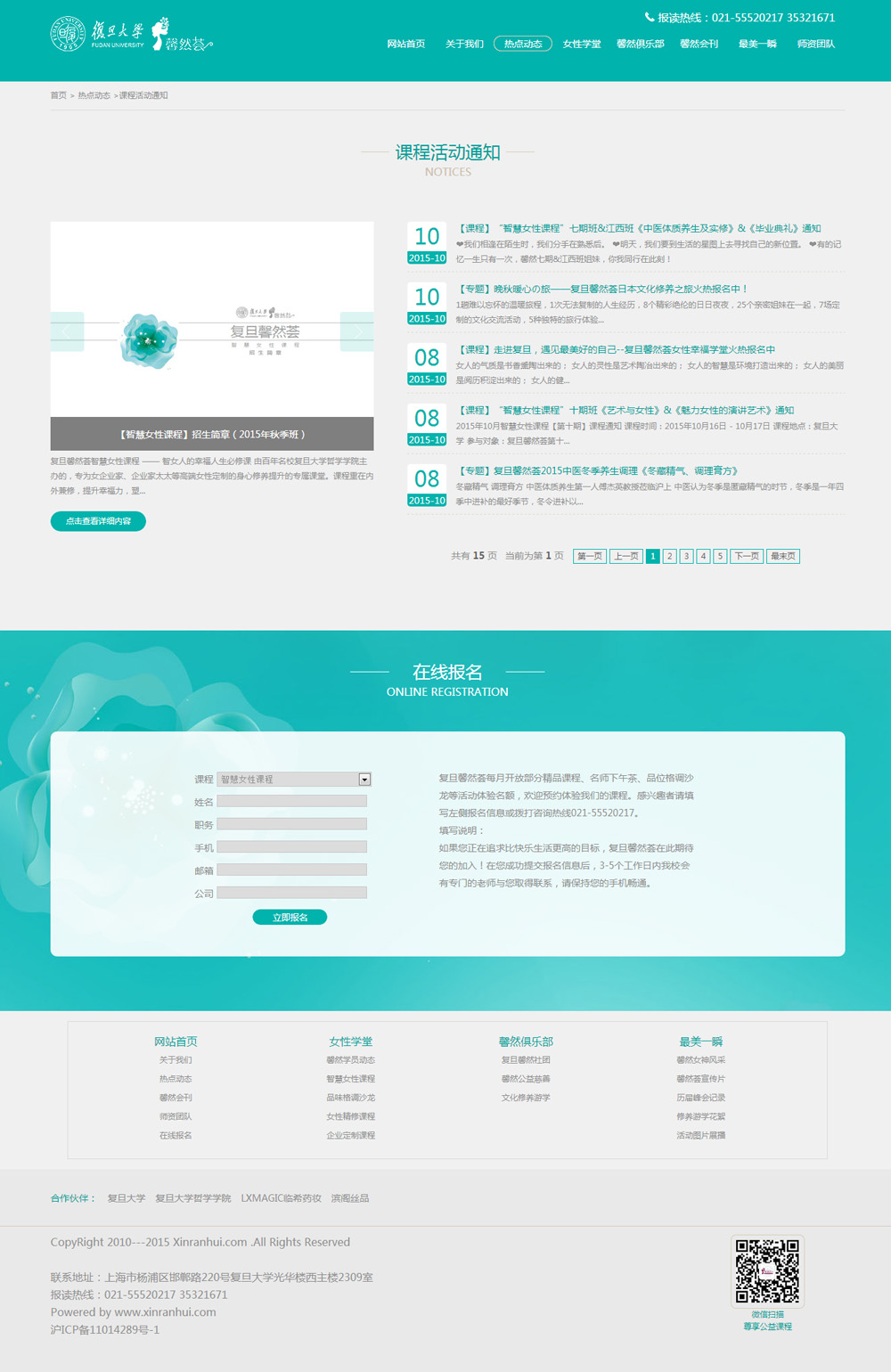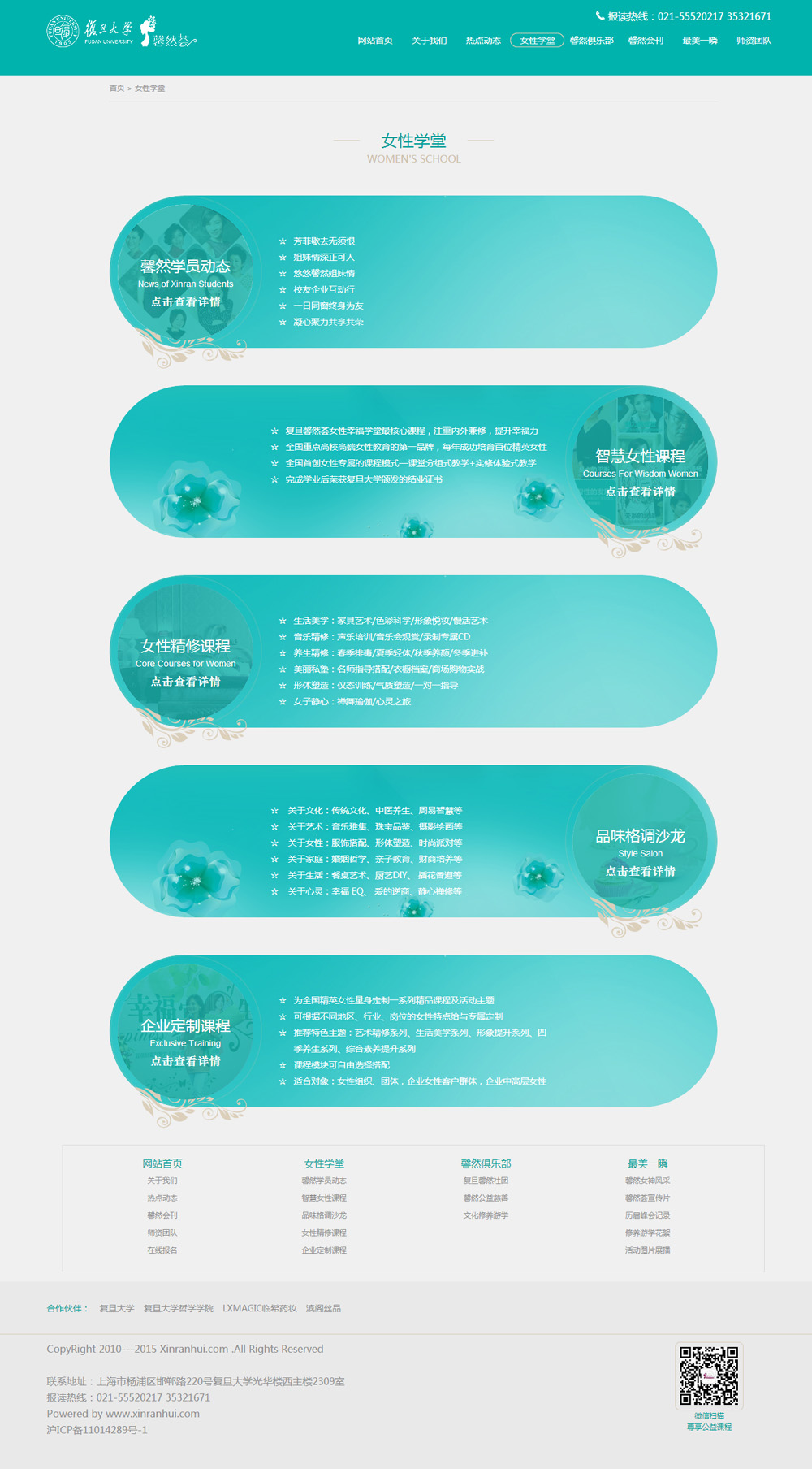 在中國最好的設計應該是北上廣,但硅峰一直致力于網(wǎng)站設計的研究與實(shí)踐,不斷探討及嘗試國外及沿海地區的設計思想,正因為如此,已有多家上海、北京甚至境外的客戶(hù)找到我們做網(wǎng)站建設了。【復旦大學(xué)馨然薈】官網(wǎng)已經(jīng)正式上線(xiàn),本網(wǎng)站可以說(shuō)是不計成本的做到完美,一個(gè)能讓客戶(hù)滿(mǎn)意的作品必須具體兩個(gè)條件,一是我們有專(zhuān)業(yè)的技術(shù)大咖,二是我們用心了。