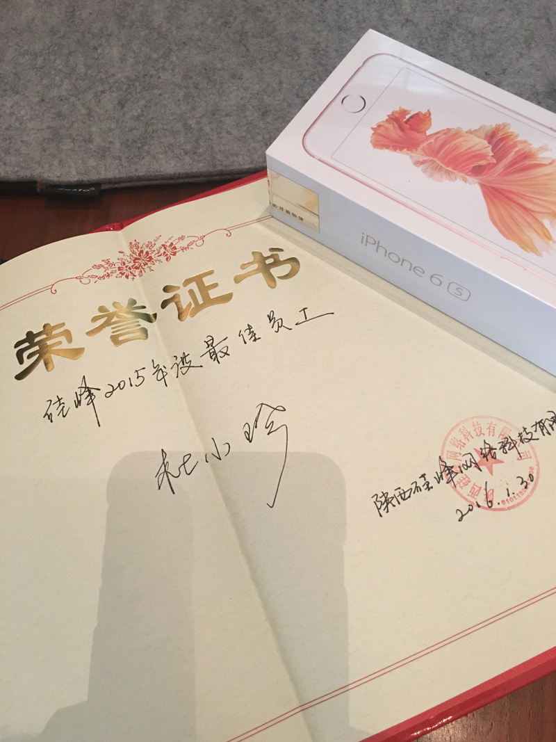 硅峰一年一度的最佳員工經(jīng)過(guò)全員公平、公正、公開(kāi)的投票,最終我們的技術(shù)大伽【杜小珍】以最高票被推選為硅峰2015年度最佳員工,公司獎勵iPhone 6S 64G 玫瑰金手機一部;這是同事們對小珍工作的有目共睹之結果;當然,能在硅峰的每個(gè)人都是最出色的,只是我們還有上升的空間,期待2016年更出色的自己!