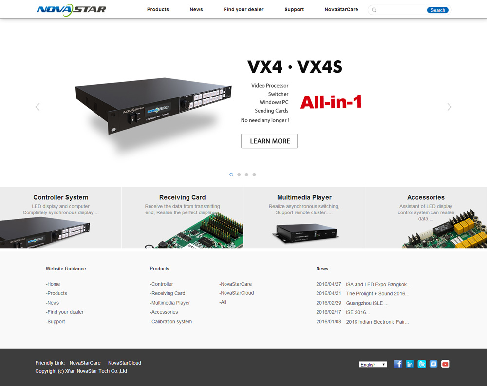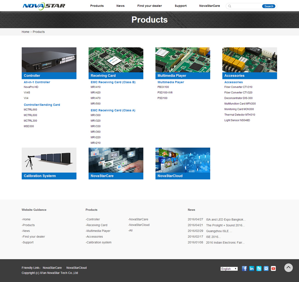 上線(xiàn)時(shí)間 :2016.06 關(guān)鍵詞:設計簡(jiǎn)約,邏輯復雜 網(wǎng)址:http://www.novastar-led.com