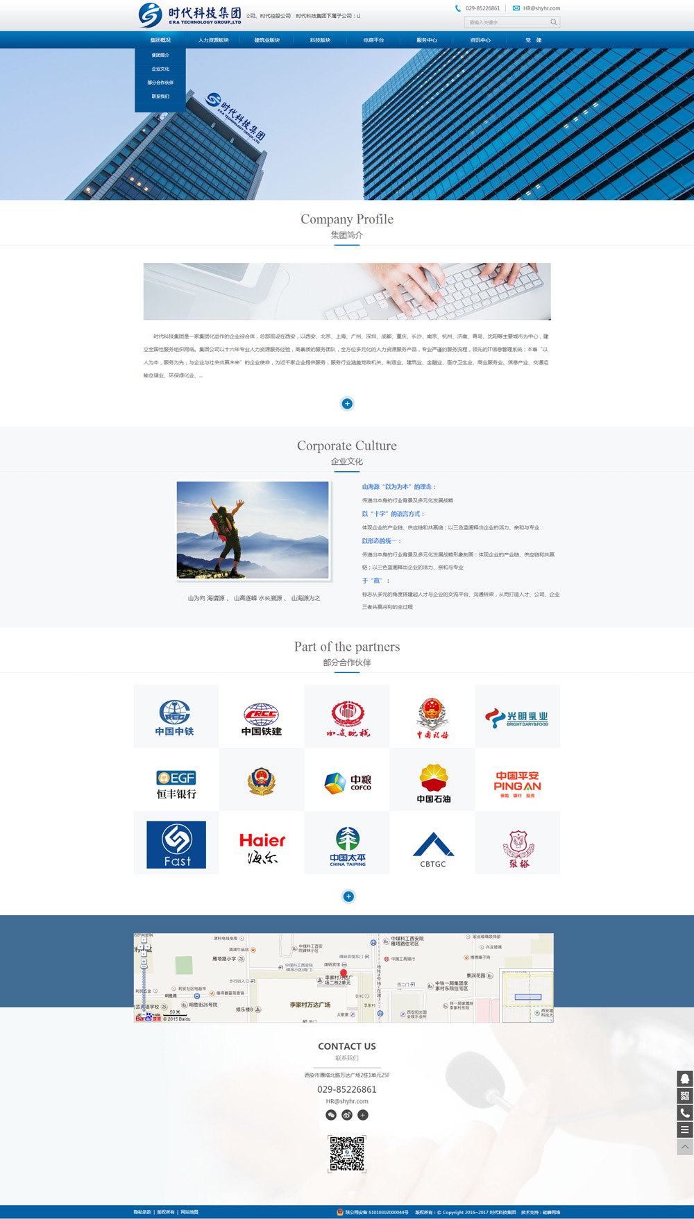 時(shí)代科技集團是一家集團化運作的企業(yè)綜合體,總部現設在西安,以西安、北京、上海、廣州、深圳、成都、重慶、長(cháng)沙、南京、杭州、濟南、青島、沈陽(yáng)等主要城市為中心,建立全國性服務(wù)組織網(wǎng)絡(luò )。集團公司以十六年專(zhuān)業(yè)人力資源服務(wù)經(jīng)驗,高素質(zhì)的服務(wù)團隊,全方位多元化的人力資源服務(wù)產(chǎn)品,專(zhuān)業(yè)嚴謹的服務(wù)流程,領(lǐng)先的IT信息管理系統;本著(zhù)“以人為本,服務(wù)為先,與企業(yè)與社會(huì )共贏(yíng)未來(lái)”的企業(yè)使命,為近千家企業(yè)提供服務(wù),服務(wù)行業(yè)涵蓋黨政機關(guān)、制造業(yè)、建筑業(yè)、金融業(yè)、醫療衛生業(yè)、商業(yè)服務(wù)業(yè)、信息產(chǎn)業(yè)、交通運輸倉儲業(yè)、環(huán)保綠化業(yè)、住宿餐飲業(yè)、輕工食品業(yè)、冶金礦產(chǎn)業(yè)、石油化工業(yè)、農林牧漁業(yè)、文體娛樂(lè )業(yè)、教育、國際組織等國民經(jīng)濟絕大多數行業(yè)。