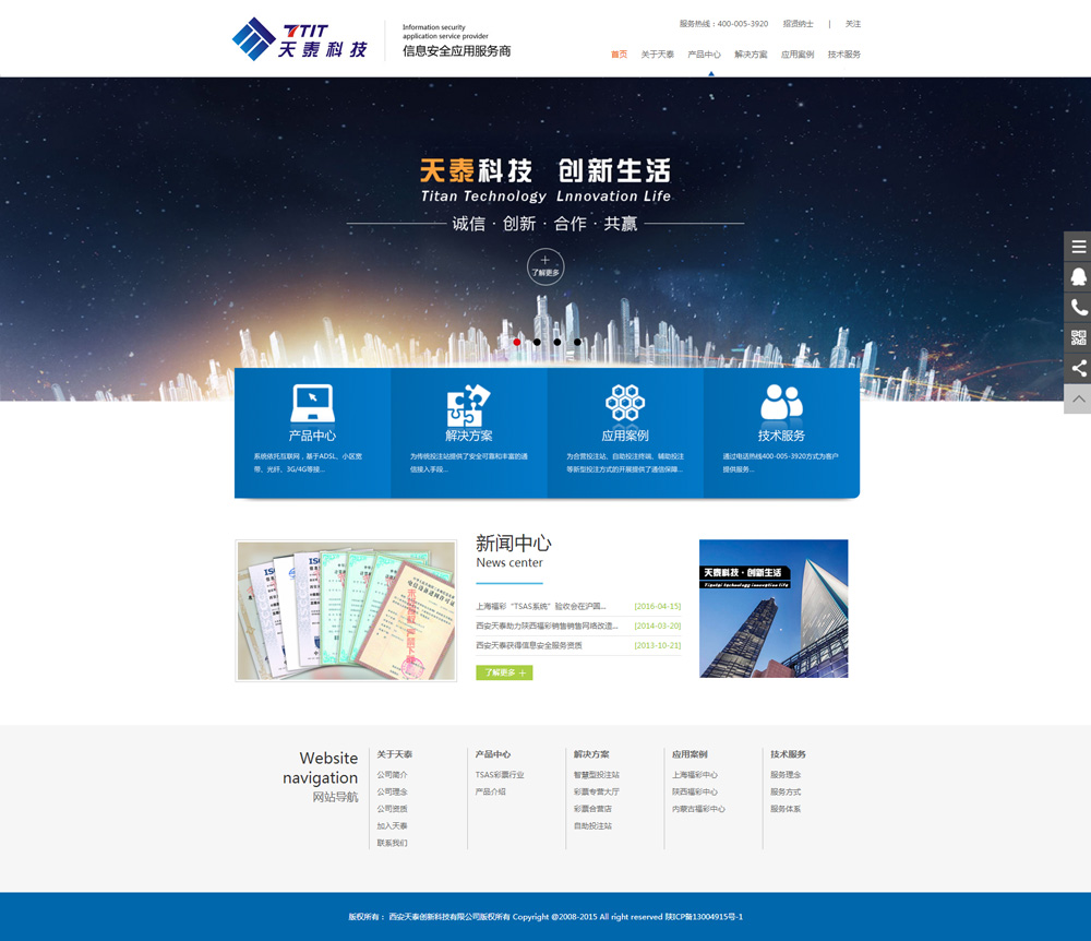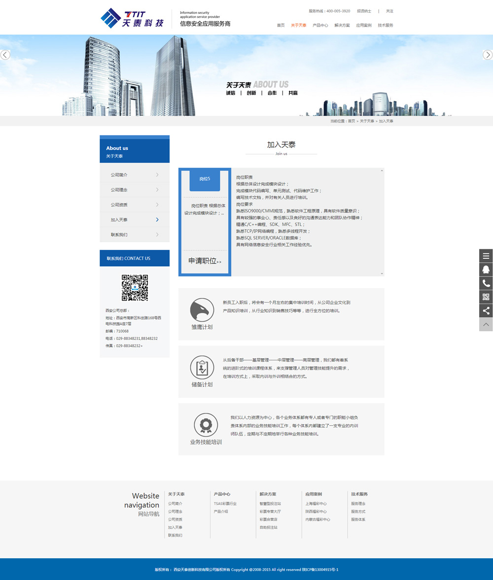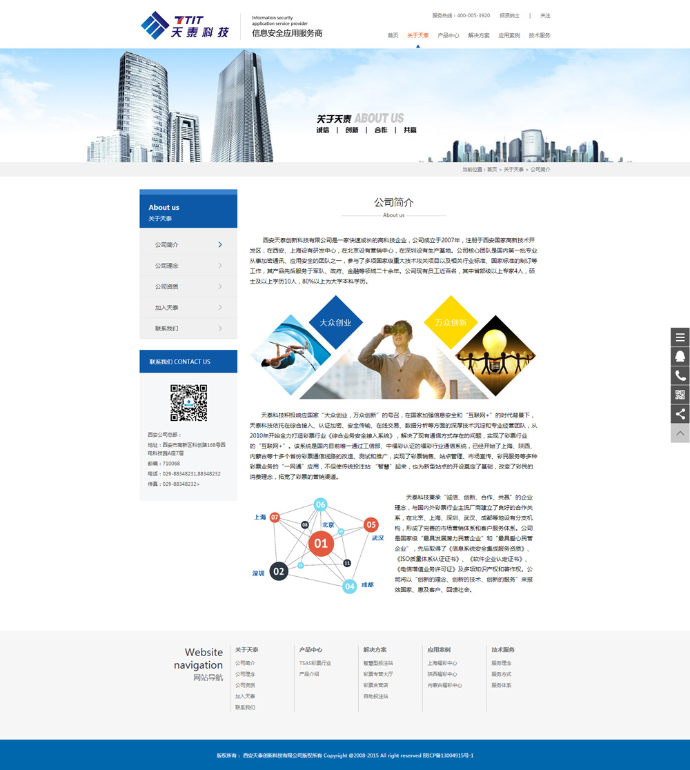 西安天泰創(chuàng )新科技有限公司是一家快速成長(cháng)的高科技企業(yè),公司成立于2007年,注冊于西安國家高新技術(shù)開(kāi)發(fā)區,在西安、上海設有研發(fā)中心,在北京設有營(yíng)銷(xiāo)中心,在深圳設有生產(chǎn)基地。公司核心團隊是國內第一批專(zhuān)業(yè)從事加密通訊、應用安全的團隊之一,參與了多項國家級重大技術(shù)攻關(guān)項目以及相關(guān)行業(yè)標準、國家標準的制訂等工作,其產(chǎn)品先后服務(wù)于軍隊、政府、金融等領(lǐng)域二十余年。公司現有員工近百名,其中省部級以上專(zhuān)家4人,碩士及以上學(xué)歷10人,80%以上為大學(xué)本科學(xué)歷。