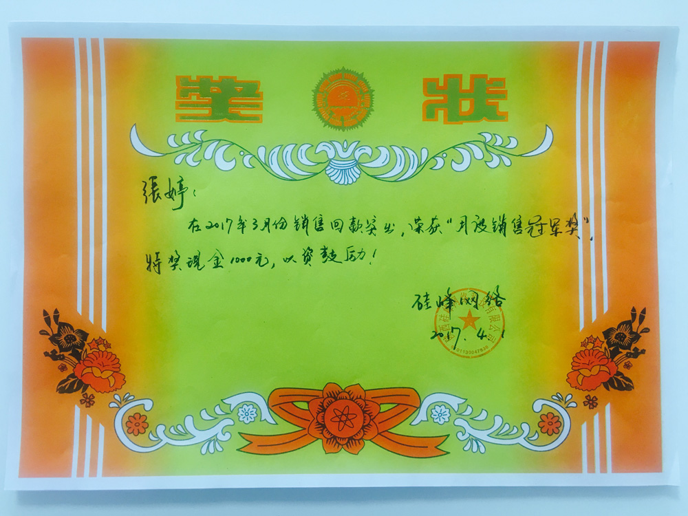 硅峰二〇一七年三月份暨第一季度表彰會(huì ),我們都是最棒的,你們是最突出的,再接再厲,再創(chuàng )佳績(jì)!